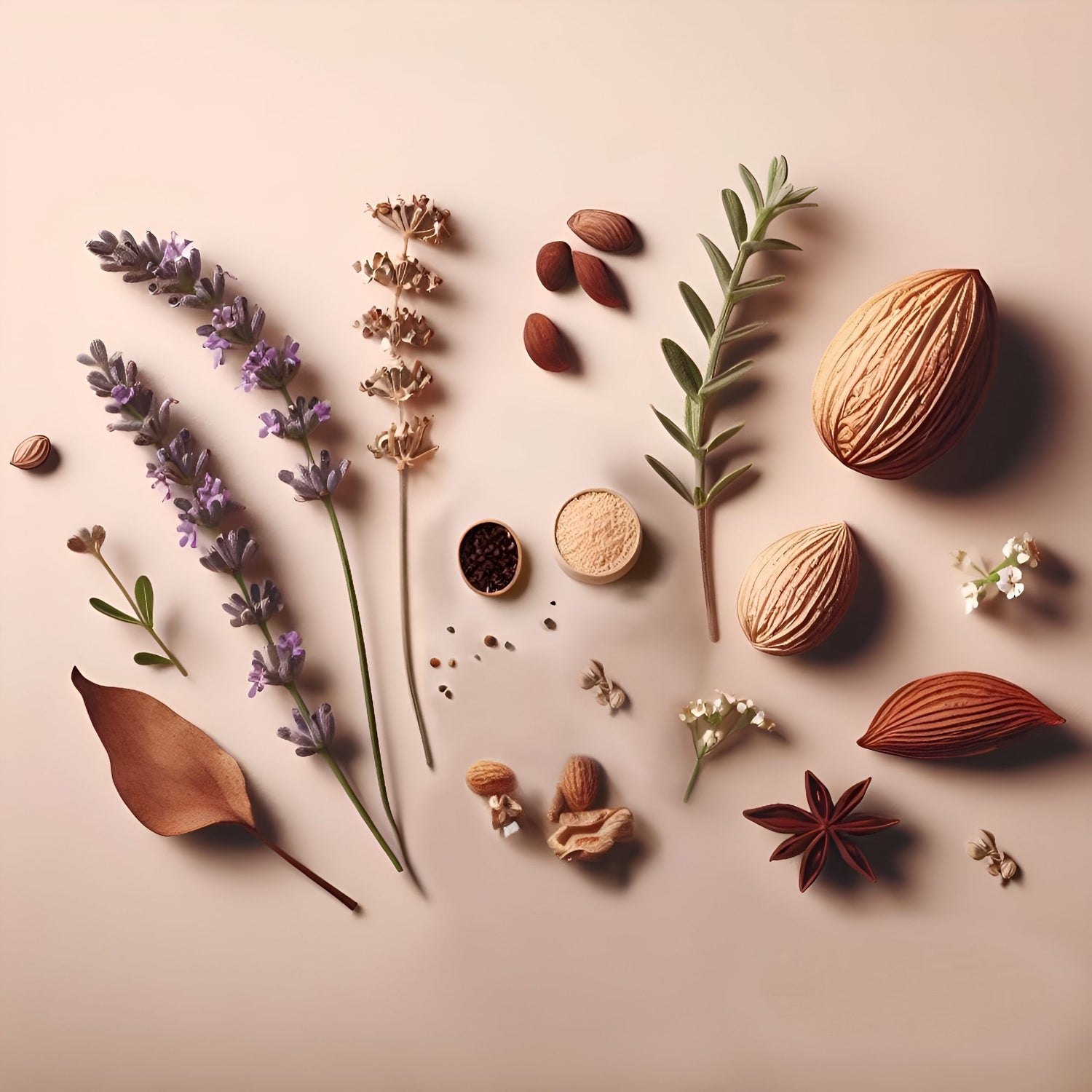 Lavanda, Piña, Bergamota, Cedrón, Manzana Roja, Frutos secos, Musgo de roble, Geranio, Cumarina, Rosa, Haba tonka, Sándalo.